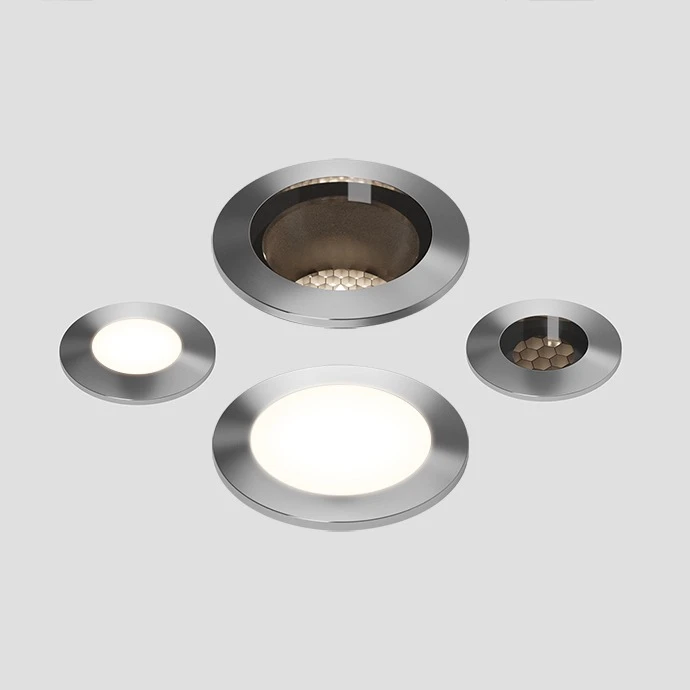 Грунтовые светильники POINT IN с индексом пылевлагозащиты IP67 решают большой спектр задач: от габаритной подсветки ступенек на входе в здание до ландшафтного дизайна приусдебного участка. Применяя светодиоды с CRI 90+, Цветовую температуру 2700К, а также высококачественную оптику со световым пятном без затемнений и ореолов, мы можем создать уютную атмосферу гостеприимства.
