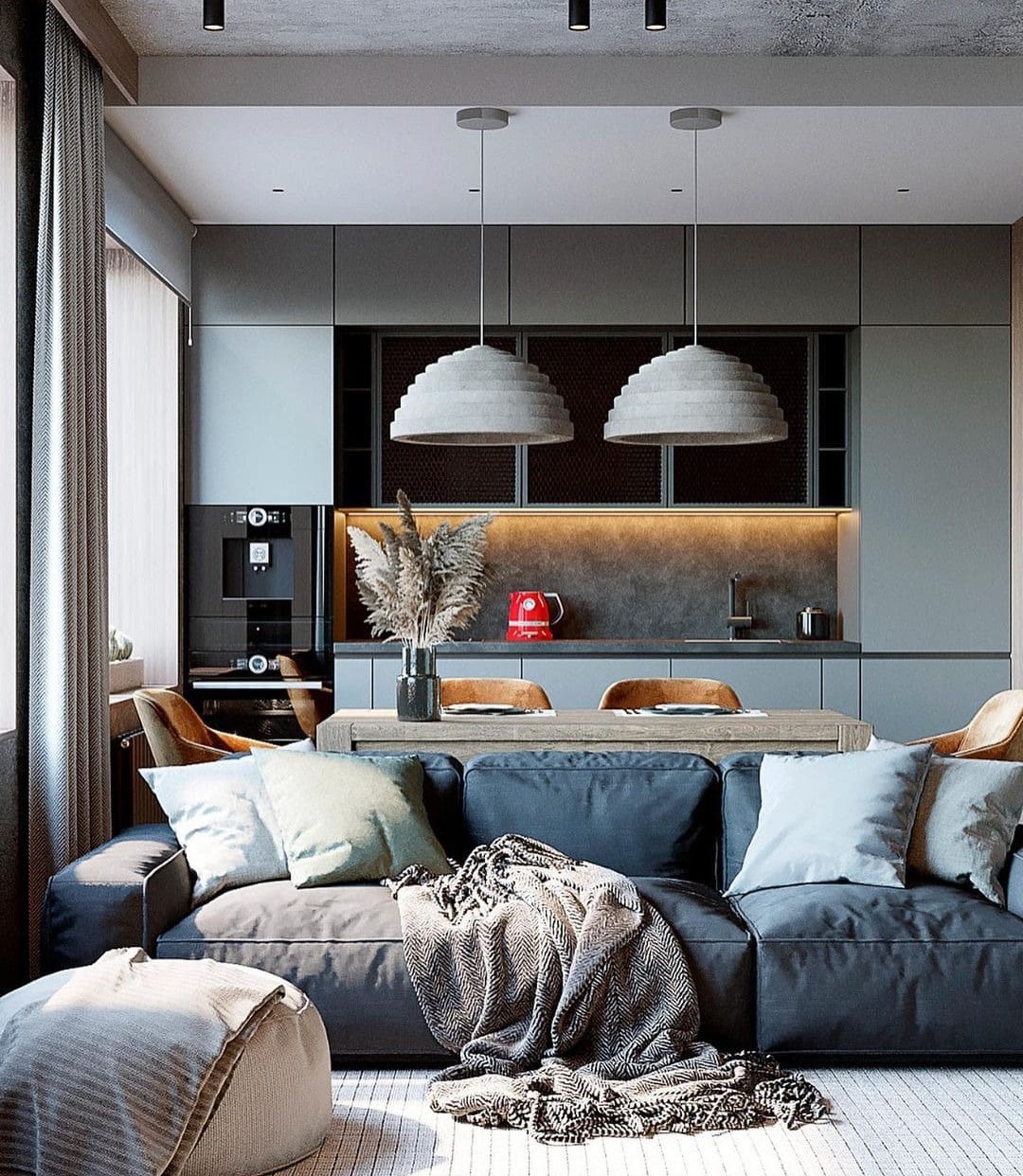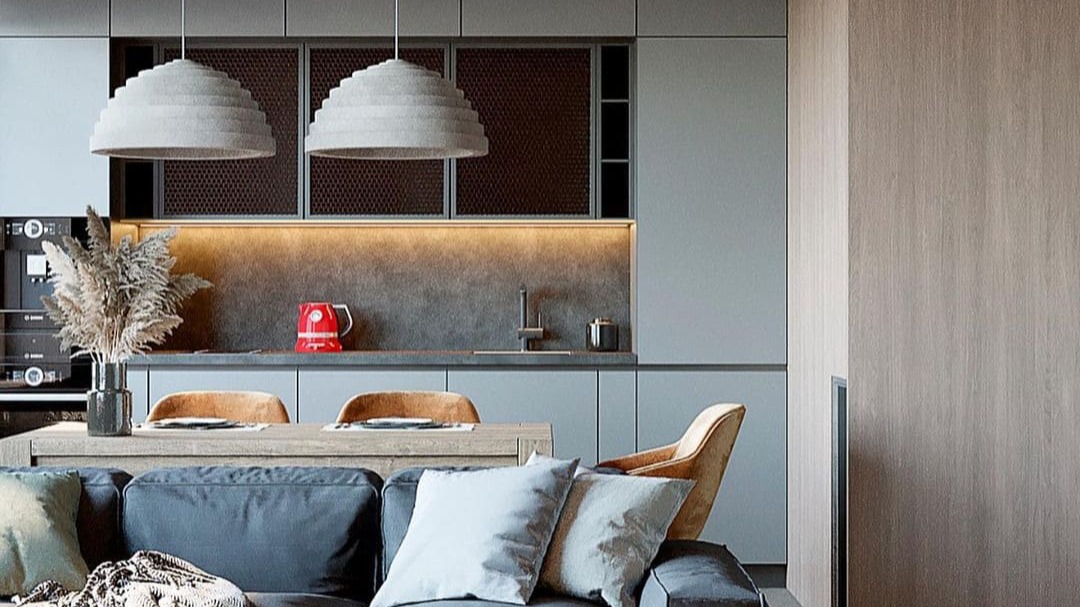 Серые тона с теплыми акцентами - и ничего лишнего. Каждая деталь - грамотный подход к пространству, включая освещение от бренда TECHNOLIGHT.