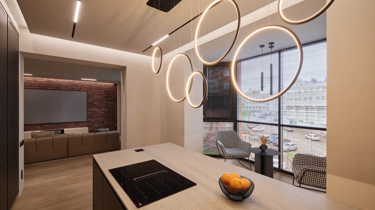 Приглушённый свет, акцентная подсветка, мягкий диван - эта кухня-гостиная для тех, кто живёт в своё удовольствие, предпочитая комфорт и домашний уют в любое время суток. И освещение TECHNOLIGHT создаёт здесь именно такую атмосферу.